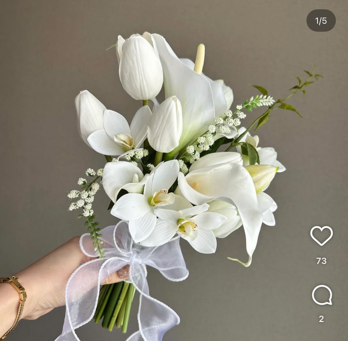 【ブーケ(s)×flower ear cuff SET】¥30,000- ★友人割引★-¥5,000- 【¥25,000-】 【ブーケ】 Sサイズ (flower ear cuffの雰囲気に合わせたデザイン、ブーケはちょいグリーンたす) 【flower ear cuff】 左ear cuff、ピアスで作成 ◼️ご使用日3/20