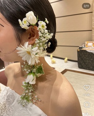 【flower ear cuffオーダーメイド】 premiumプラン¥16,500- ◼️ホワイト、グリーンデザイン ブーケの雰囲気、お写真デザインを元に作成する かすみそう入れる、 ホワイトグリーンで統一感だす ◼️右耳ear cuff/ピアス ◼️3.29 (3/6前後完成予定)