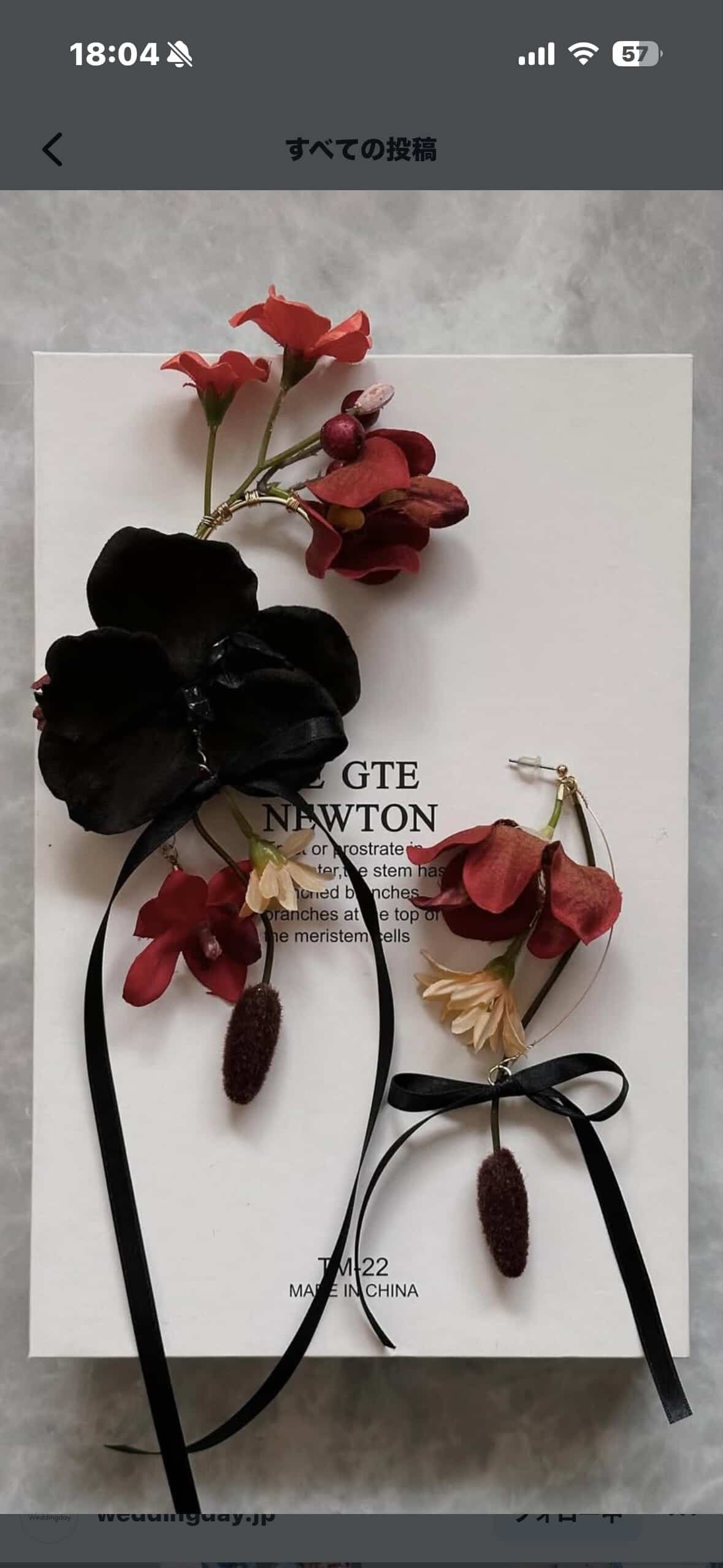 【flower ear cuffオーダーメイド】 ¥12,000-(税込¥13,200-) ★黒リボンオプション ¥1,000- ◼️色味に関して 赤(ボルドー)メイン花 薄いピンクをポイント花で 黒リボン ◼️配置について 耳たぶにメインの大きいお花で作成 ◼️右耳ear cuff/ピアス ◼️5/10ご使用日 (3/19-3/26ごろ完成予定)