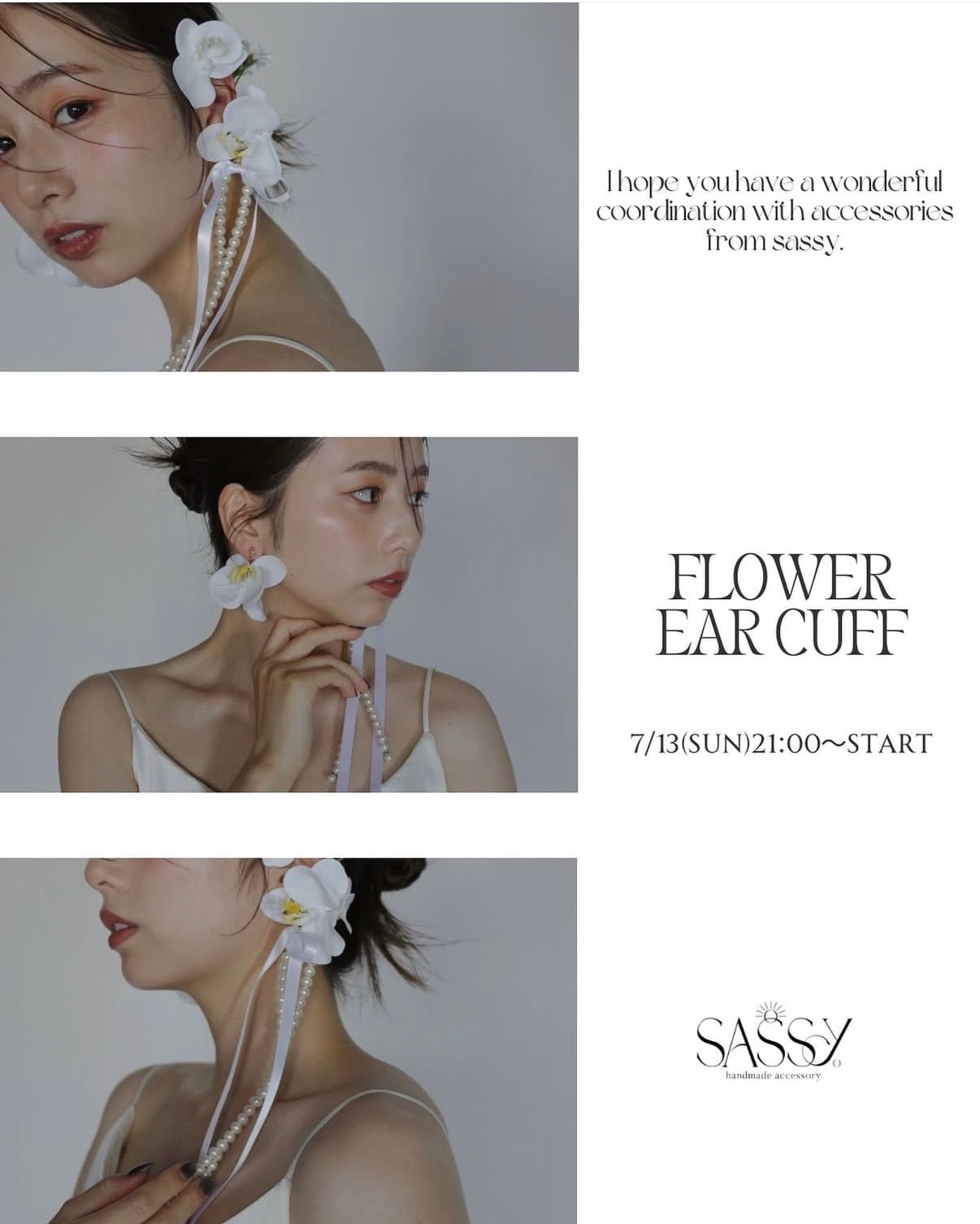【ブーケ(M)×flower ear cuff SET】 ¥38,500- 【ブーケ】 Mサイズ 紫陽花の寒色系(水色4/薄い青2/ターコイズブルー1) ガーベラの白(3) 少しだけぴょんぴょん動きのあるデザイン 下に垂れているデザイン 【flower ear cuff】 左ear cuff、イヤリングで作成 ロングパール(¥1,000-) ★配置はすべてお任せ★ ◼️ご使用日5/30