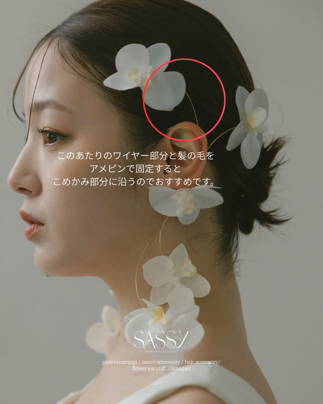 作成したsassy.オリジナルフラワーイヤカフ