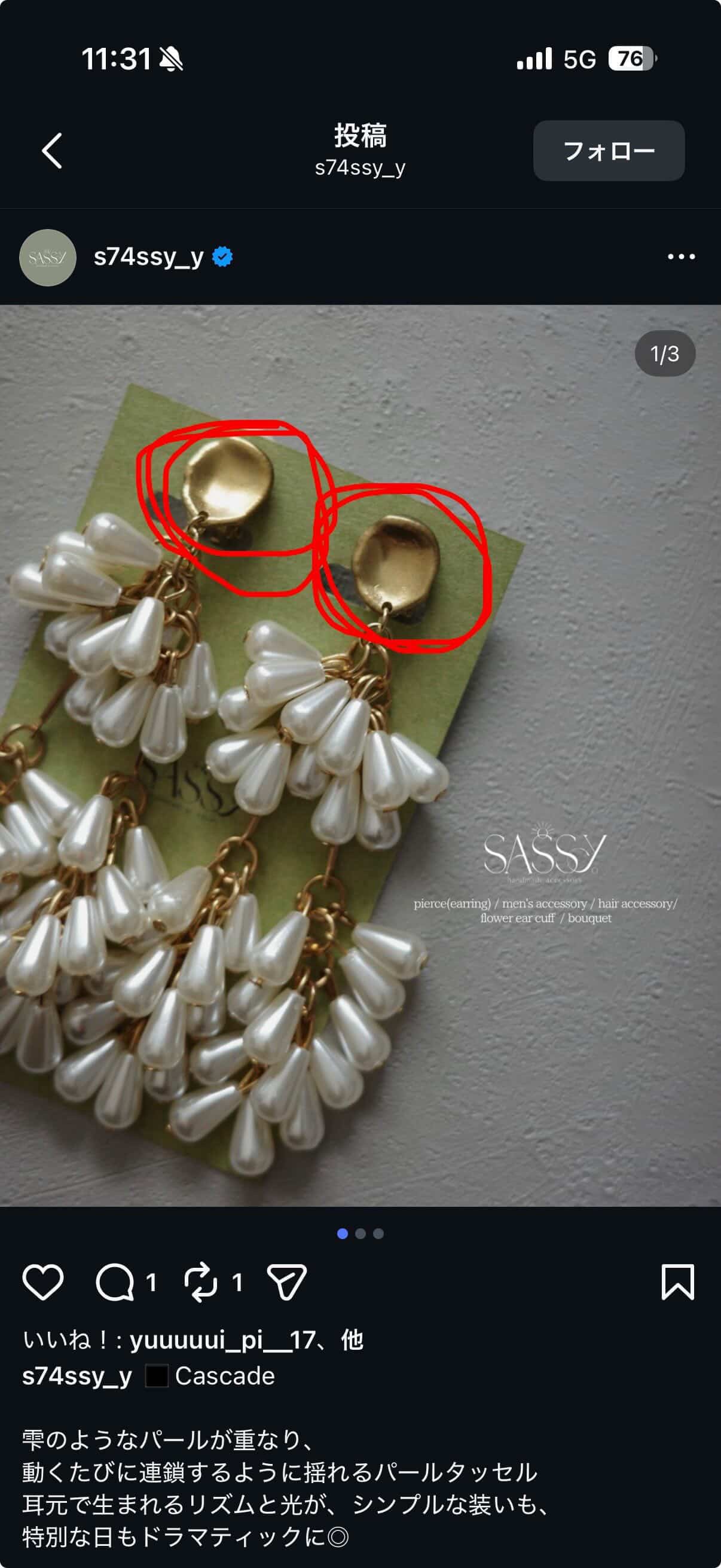 ◼️オーダーメイド【¥12,000-】 ◼️イヤリング代替えパーツで同デザイン ◼️BASE、Instagramお問い合わせ ◼️4/20-4/23発送